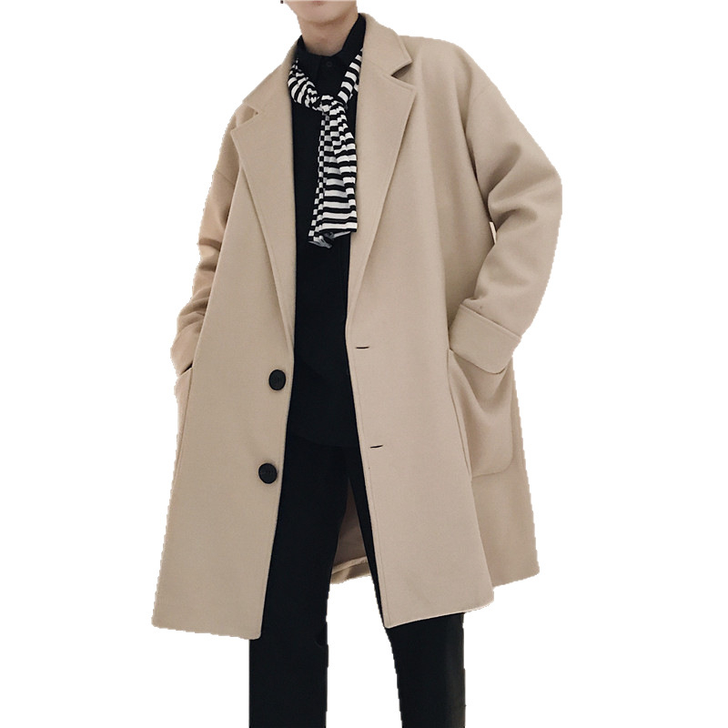 Mens Stylish Warm Casual Mid-length Wool Coat